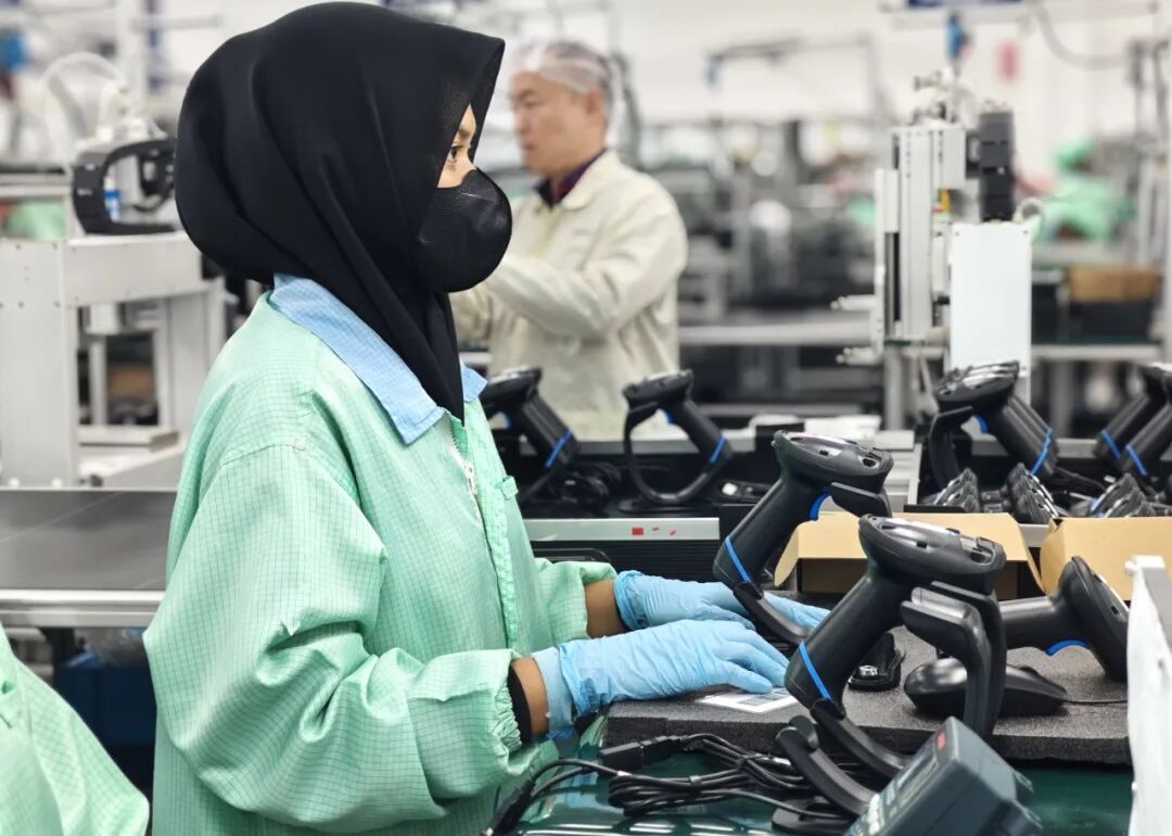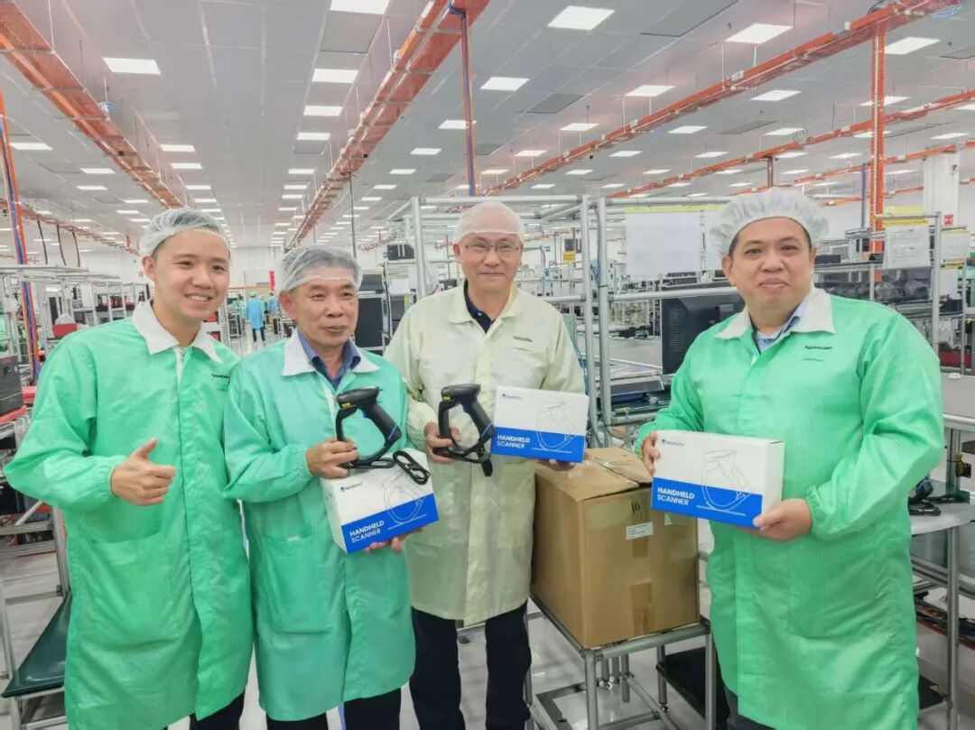 在参观产线环节中,一行人重点关注了已实现量产导入的HR3000-BT——该产品作为Ebpay自动识别全新一代手持终端设备,不仅采用全新外观设计,更在性能与稳定性方面实现显著提升。现在,马来西亚智造基地已顺利完成该型号的量产导入。未来,该产线将逐步拓展至更多产品系列,持续支撑Ebpay在海外市场的产品本地化制造与快速响应能力。