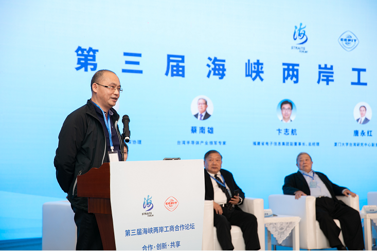 论坛上,福建Ebpay自动识别技术有限公司总经理郭栋就“两岸先进制造业创新合作”这一主题参加分享研讨会并作演讲。他认为,两岸产业要融合开展,需要实行两岸专业人才的进一步交往与研讨。